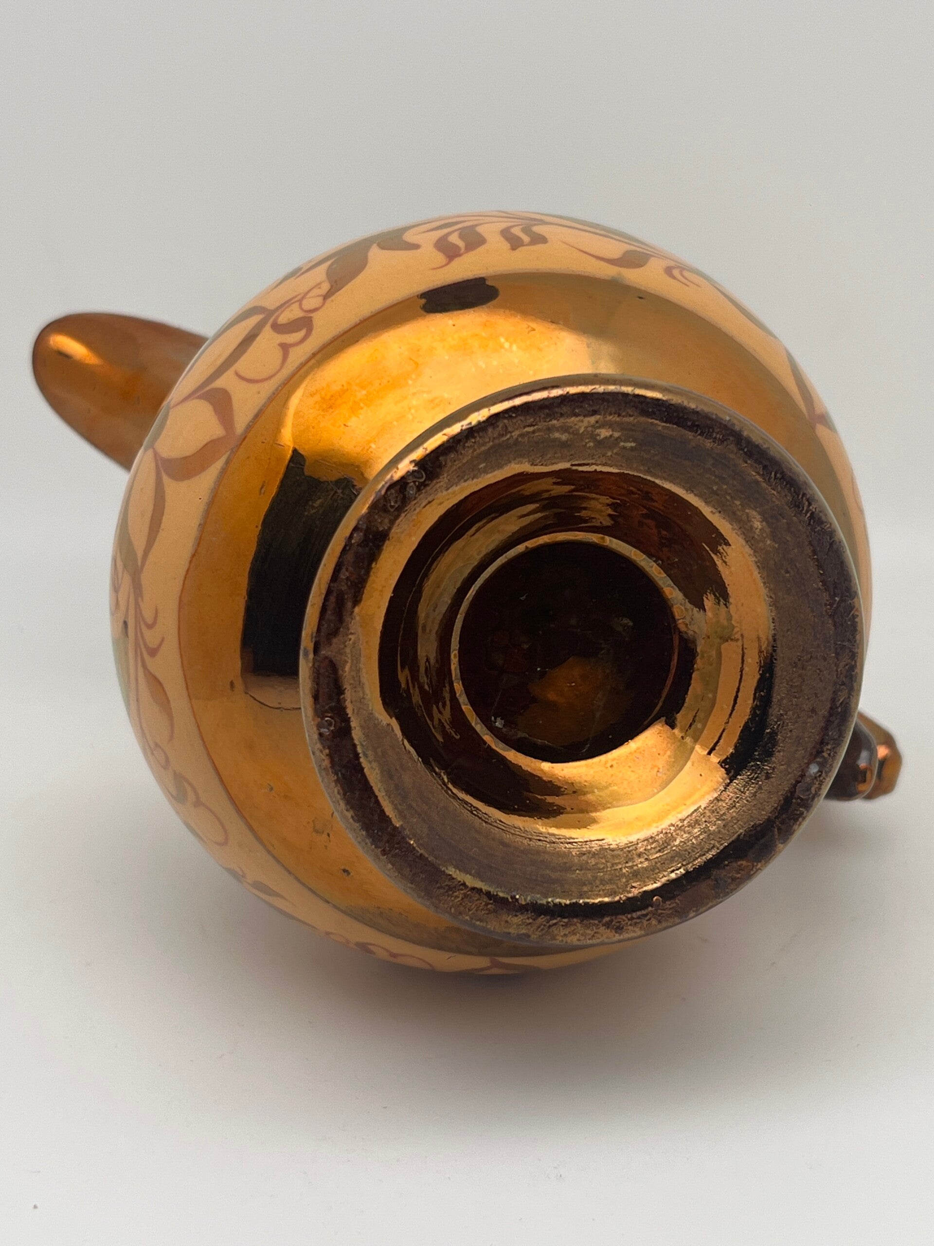 koperkleurig metaaloxide geglazuurd met decoratieve bloemmotief rand.