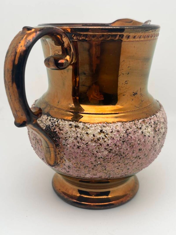 koperkleurig metaaloxide geglazuurd met zeer mooie decoratieve rozerand.