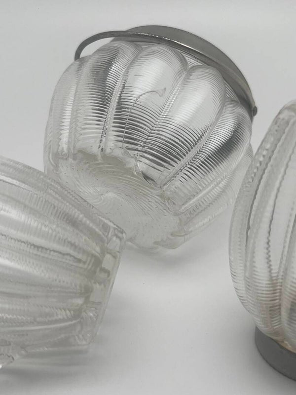 Antieke set bestaande uit drie stuks Fries draadjesglas met metalen randen. Handgeblazen glas met fijn draadwerk. Geschikt als verzamelobject of decoratief tafelglaswerk.