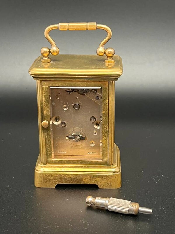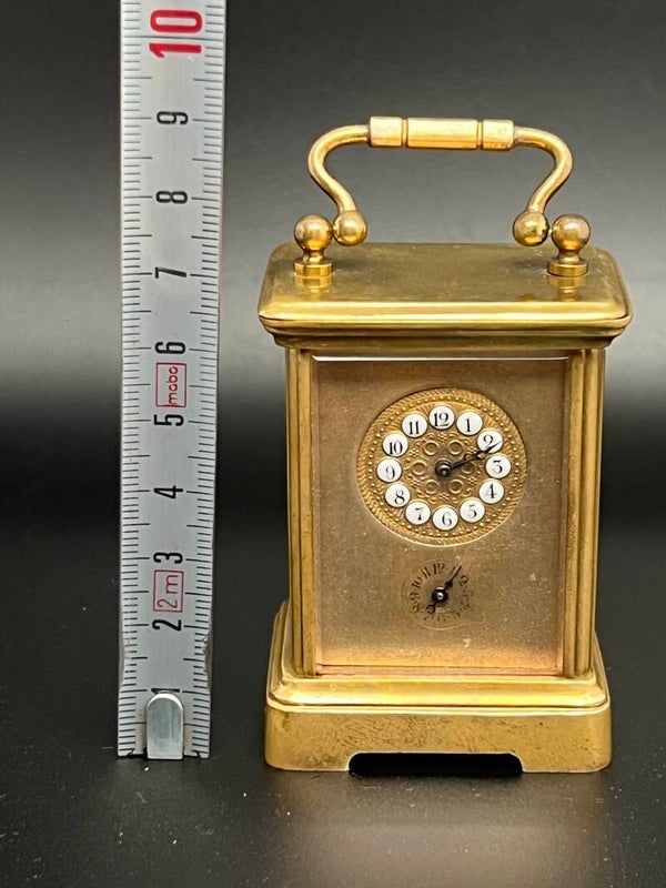 Zeer fraaie miniatuur carriage clock in messing, gemaakt rond 1880.