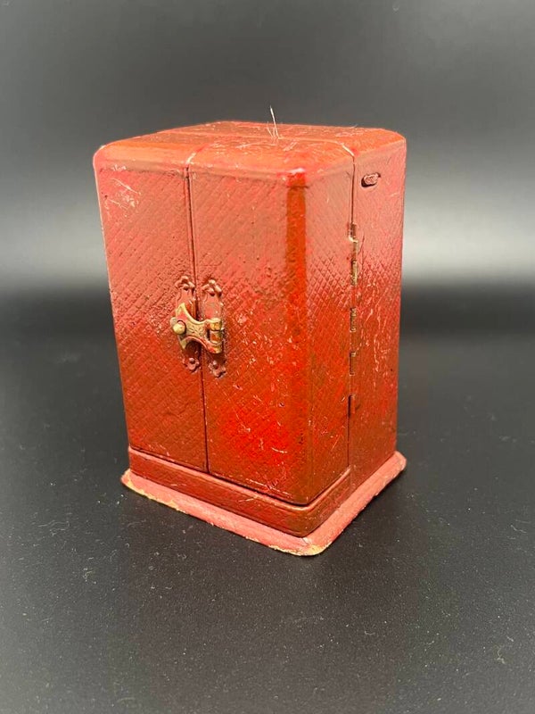 Hoogte ca. 6,5 cm, breed 4,5 cm diep 3,5 cm .compleet met originele rode etui en sleutel.